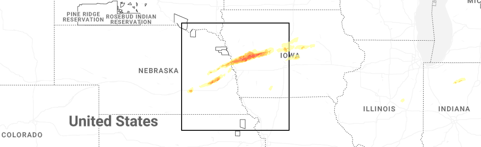 | 11:18 AM CDT | Quarter sized hail reported near Pisgah, IA, 40 miles N of Omaha, NE |