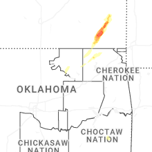 | 2:18 PM CDT | Quarter sized hail reported near Barnsdall, OK, 27 miles N of Tulsa, OK, report from mping: quarter (1.00 in.). |