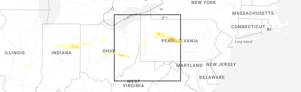 | 5:00 PM EDT | Half Dollar sized hail reported near Strattanville, PA, 63.1 miles NNE of Pittsburgh, PA |